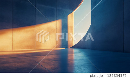 Large, empty room with a blue wall and a large window. The window is letting in a lot of light, creating a bright and open atmosphere