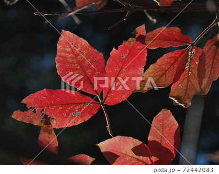 メグスリノキの紅葉 透過光で一層鮮やかに見える