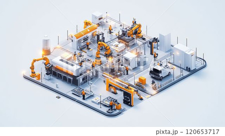 自動車組み立て工場の汎用組み立てロボットのイメージ素材