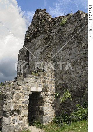 Ancient stone ruins of abbey church in Avon les Roches
