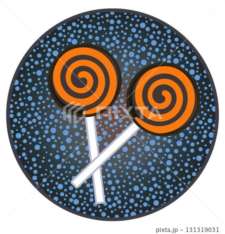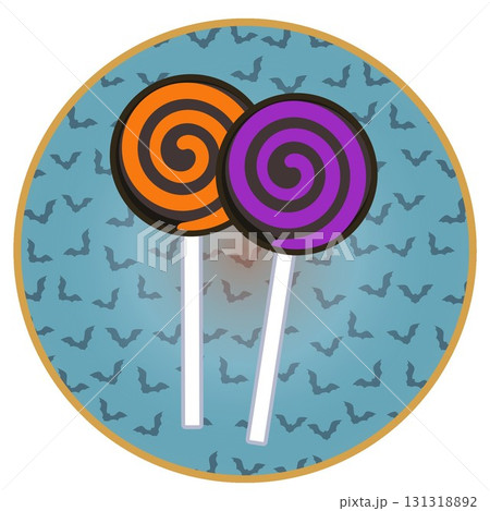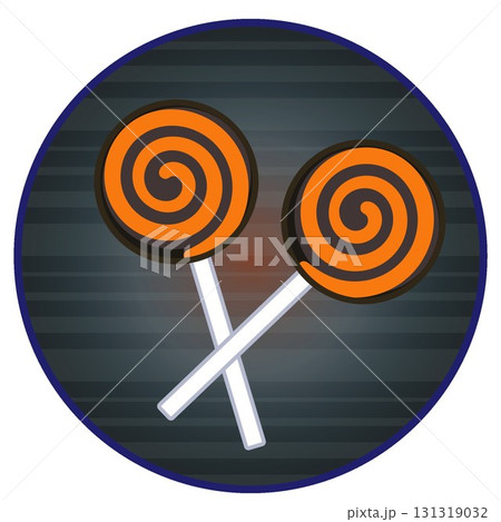 円形背景つきハロウィーンのイラストペロペロキャンディ