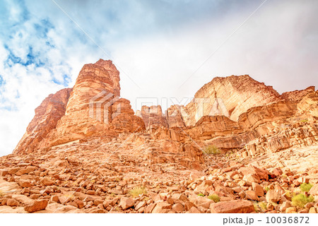 Jordanian rocky mountain in Lawrence's Spring, Wadi Rum, Jordan.