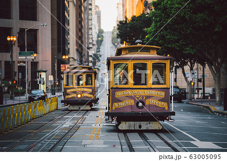 San Francisco Cable Cars on California Street at sunrise, California, USA