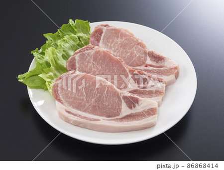 食材、豚肉、ポーク、肩ロース肉、精肉。カツ、トンテキ用。トレー。