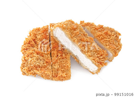 厚切りのハーブ三元豚やわらかトンカツをカット【白背景・切り抜き】