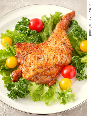 香味鶏 ローストチキンレッグ (縦位置ハイアングル)