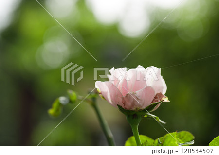 Rose with water droplets on petals in a garden during morning time