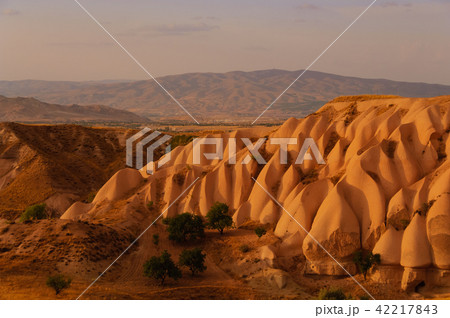 トルコ カッパドキア 太陽の陽を浴びたローズバレー