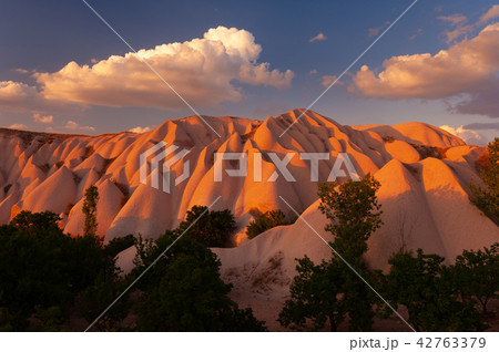 トルコ カッパドキア オレンジ色に染まったローズバレー