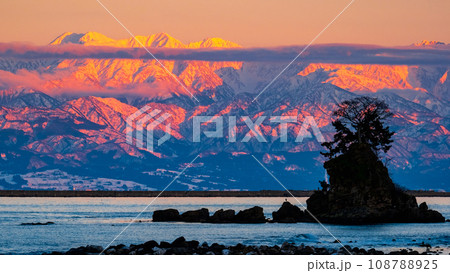雨晴海岸から望む夕暮れの立山連峰(剱岳)