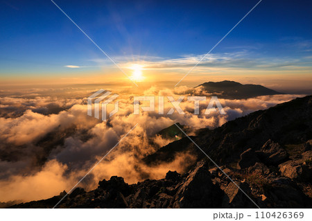 夕焼けの南アルプスの雲海