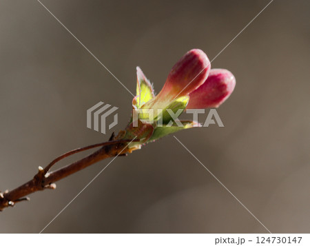 早春に花を咲かせる山野草 スイカズラ科ウグイスカグラの淡紅色の花