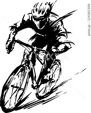 ドロップハンドルのロードバイクに乗る髪の長い若い女性のシンプルな線画