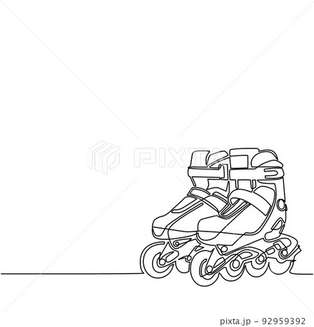 Single one line drawing pair of old retro plastic quad roller skate shoes. Healthy fitness sports concept. Vintage classical inline skating boot equipment sport. Continuous line draw design vector