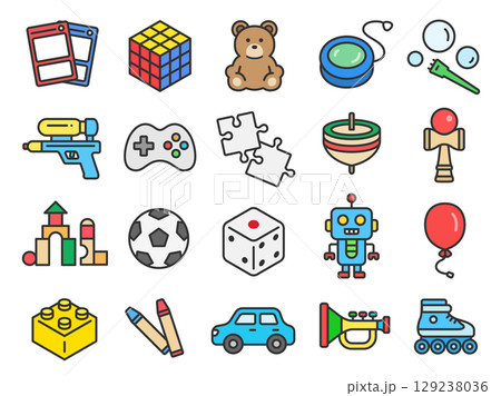 いろいろな、ホビーのアイコン(線画カラー)のイラストセット