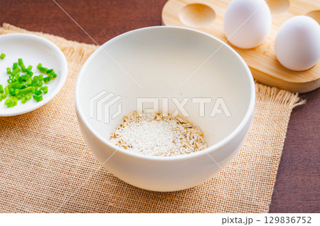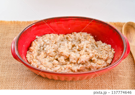 白い器に盛られた、粒状のオートミール【ロールドオーツ、トラディショナルオーツ】_02
