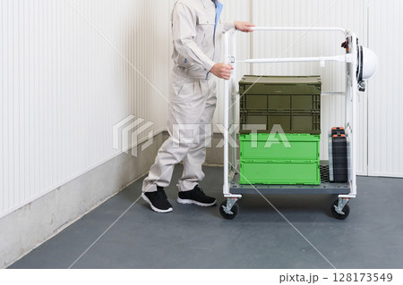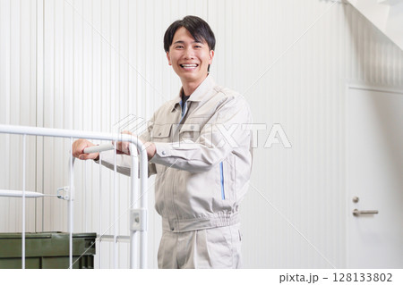 倉庫で働く男性作業員の全身