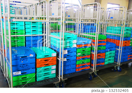 物流倉庫内のカゴテナーやオリコンなどの倉庫構内の風景