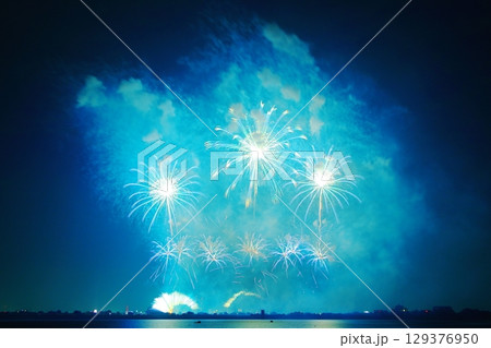 打ち上げ花火 青色系 広いコピースペース