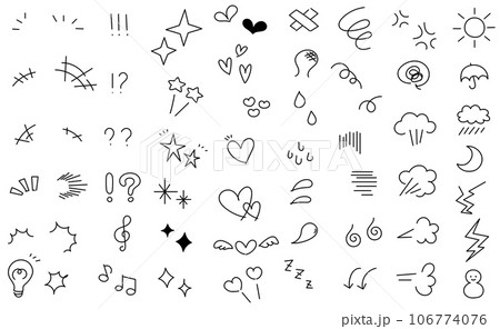 アクセント 飾り イラスト セット 装飾 落書き キラキラ 星 ハート 矢印 素材 かわいい 線
