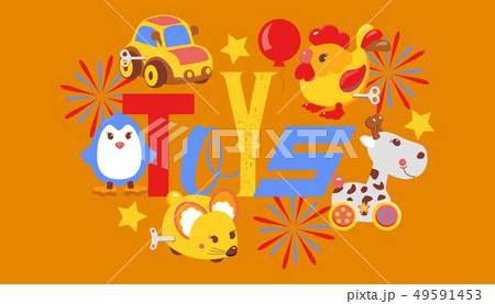 Clockwork bright mechanic children toys shop banner, brochure vector illustration. Mechanical windup