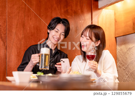 レセプション・パーティー イメージ グラスを持って歓談する若い男女