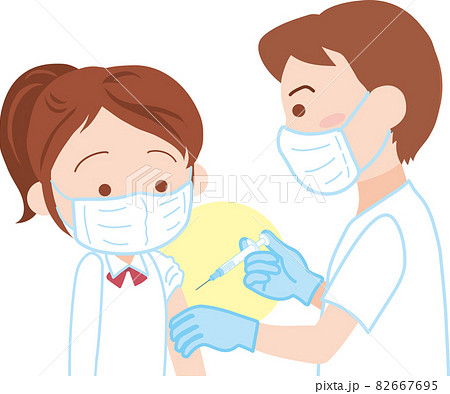 注射 コロナワクチン 予防接種 看護師 女性 イラスト素材