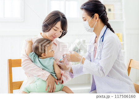 診察を受ける赤ちゃん 予防接種