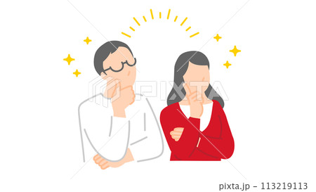 上を向き明るくポジティブな気持ちの男女のイラスト
