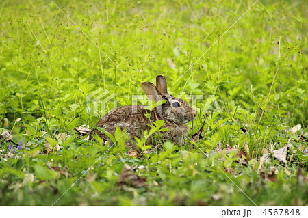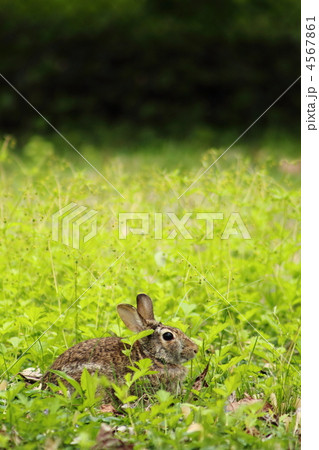 草原の中の可愛い子ウサギ