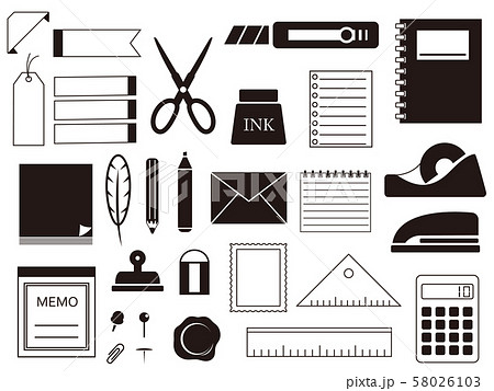 文房具のシルエットイラスト素材