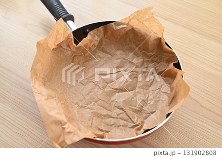 フライパンにクッキングシートを敷く