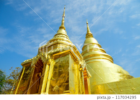 ワット・プラシン寺院の黄金の仏塔(タイ・チェンマイ県)
