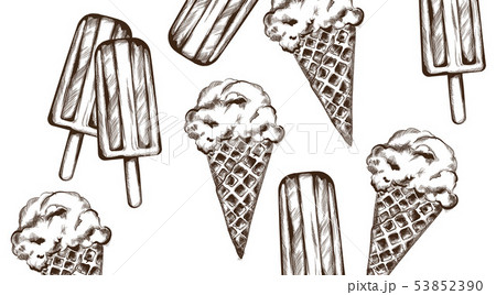 Ice cream shop emblem. Color ribbons with sweet dessert
