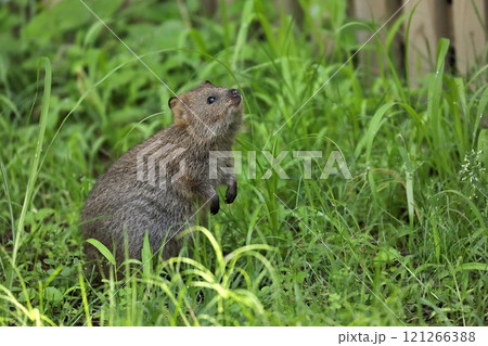 草の匂いを嗅ぐクオッカ