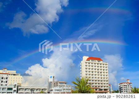 沖縄 石垣島 青い空に架かるダブルレインボー