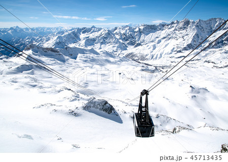 ブレイユ=チェルヴィナイア プラトー・ローザのロープウェイ(3月、イタリア ヴァッレ・ダオスタ州)