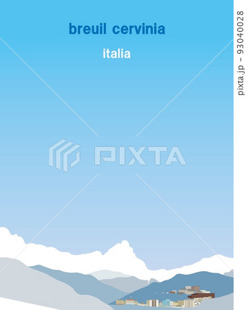 モンテ・チェルヴィーノ(マッターホルン)とブレイユ=チェルヴィナイアの街(3月、イタリア)