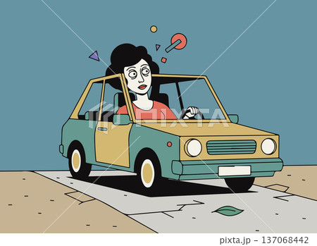 Cartoon Woman Driving a Car