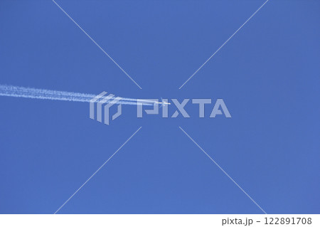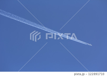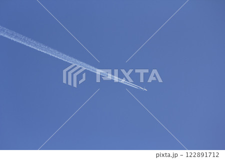 青空にまっすぐ伸びる飛行機雲の美しい風景