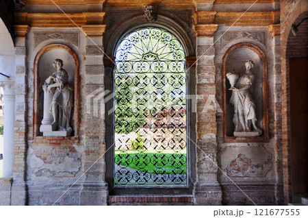 イタリア ヴェネツィア・ラグーン ムラーノ島 ガラス美術館 中庭に面した回廊