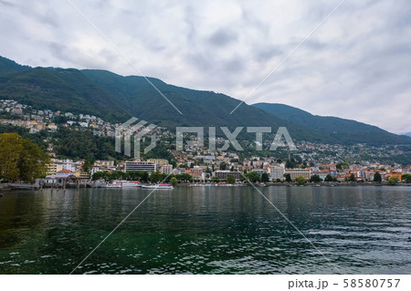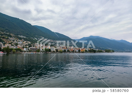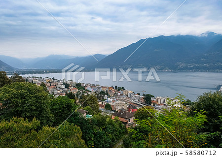 ロカルノ 街並みとマッジョーレ湖 曇り空