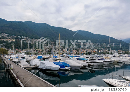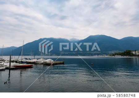 ロカルノ マッジョーレ湖 ヨットハーバー 曇り空