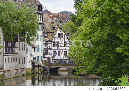 ストラスブールにある世界遺産ラ・プティット・フランスのイル川沿いの風景