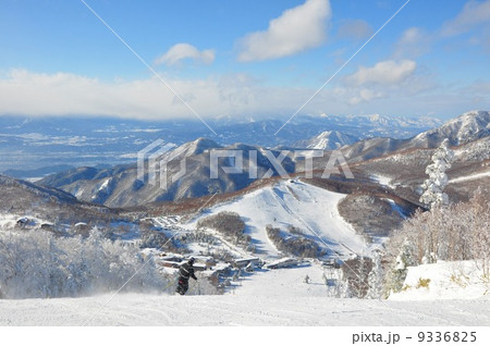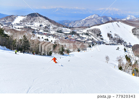 一の瀬ファミリースキー場正面ゲレンデ/北アルプス、妙高山方面を望む(志賀高原)【2021.3】