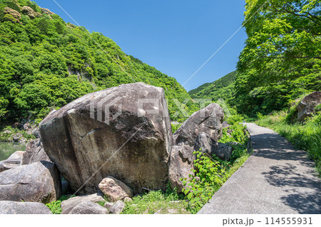 新緑の木津川風景 笠置ボルダー 京都府笠置町