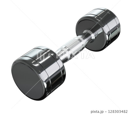 Blank Round Dumbbell, chrome weightlifting gym equipment top view, isolated on white background. 3D illustration