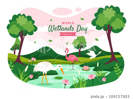 World Wetlands Day Vector Illustration on 2 February with Stork Animals and Garden Background in Holiday Celebration Flat Cartoon Design