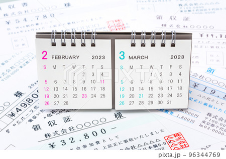 カレンダーと領収証(経理・経費・会計・確定申告イメージ)