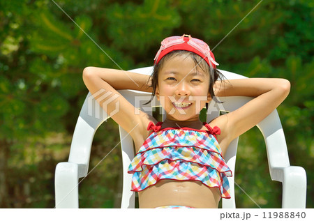 ビーチで一休みする女の子